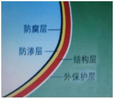 由内衬树脂加有机纤维毡增强,树脂含量 95%以上,气密性好,非常光滑。该层主要提供制品防腐、防渗漏等功能。其厚度约为 0.5mm。