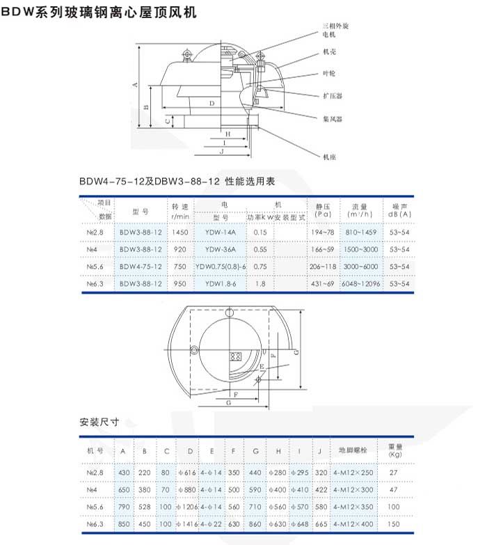 BDW系列玻璃钢离心屋顶风机